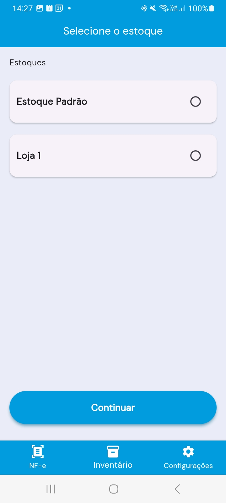 - Selecione o estoque desejado e clique em Continuar.