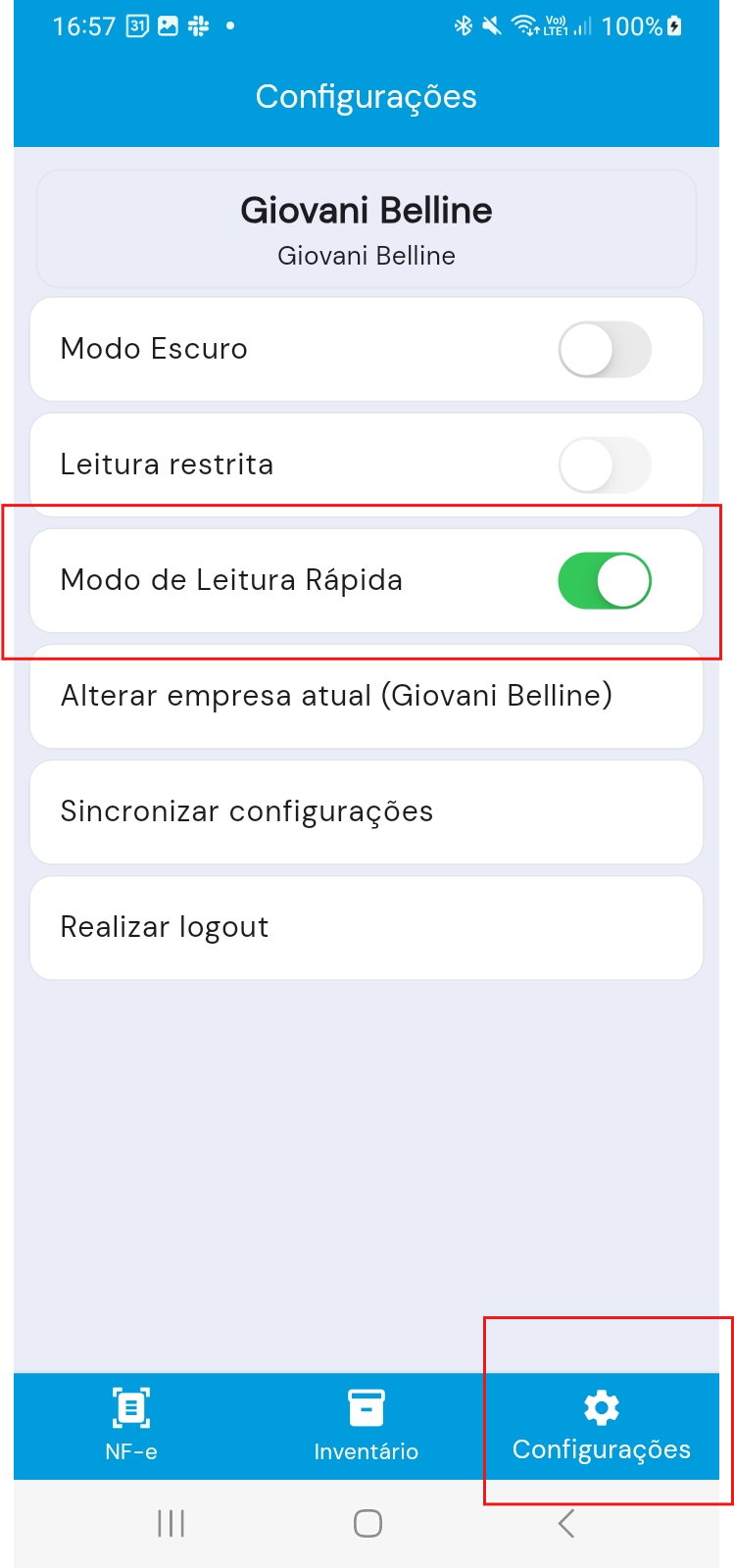 - Acesse o aplicativo Coletor de Dados>Configurações>Modo de Leitura Rápida