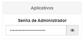 2. Senha: Insira a Senha de Administrador previamente cadastrada no ERP (Dados da Empresa > Aplicativos > Senha de Administrador).