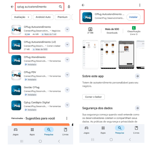 - Baixe diretamente da Google Play Store pesquisando por "ConnectPlug Autoatendimento V2".