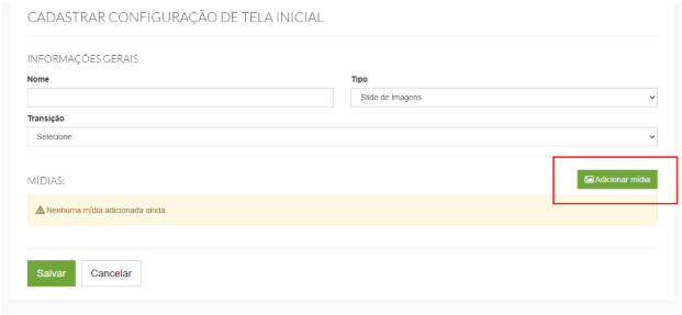 3. Clique em Adicionar Mídia e faça o upload dos seus arquivos.