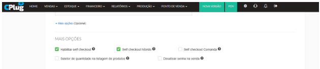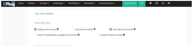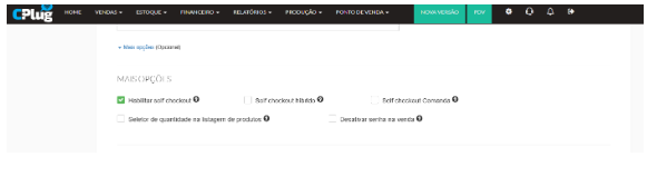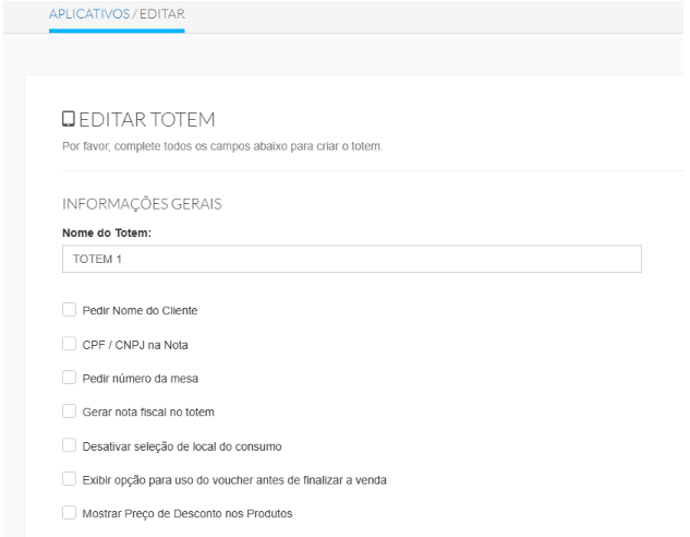 Ainda dentro das configurações do aplicativo, vamos voltar para as primeiras opções que aparecem no totem e detalhar as caixas de seleção que influenciam diretamente a experiência de checkout do cliente.