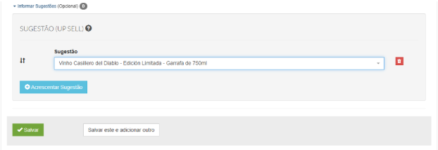 - Selecione um produto que deseja sugerir ao cliente no momento em que ele finalizar o pedido com o produto principal.