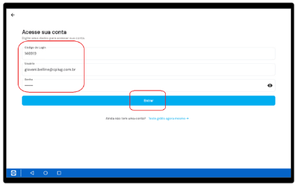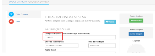 2 - Código de Login: Insira o Código de Login da sua empresa. Você o encontra nos Dados da Empresa do ERP.