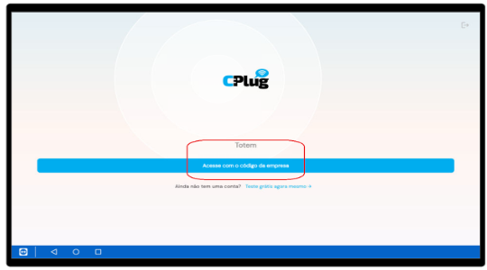 1. Acesso: Pressione e segure o Logo da CPLUG na tela inicial do totem.