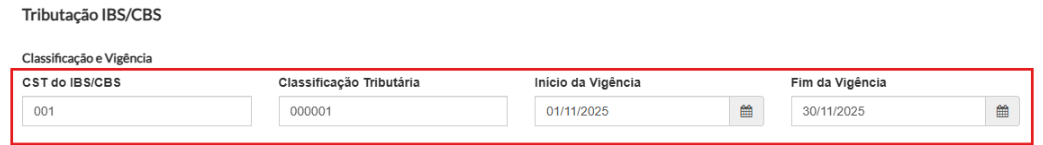 - No campo CST (IBS/CBS), insira o código de três dígitos fornecido pelo contador.