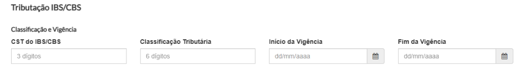 - No campo Classificação Tributária (cClassTrib), insira o código de seis dígitos.