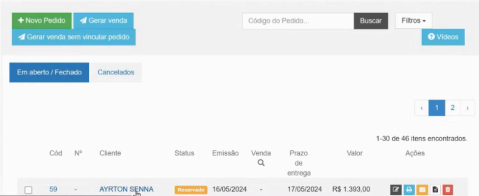 A transação é registrada no sistema ERP como um pedido de venda com status reservado. Isso indica que os produtos estão em posse do cliente, mas ainda não foram oficialmente vendidos.