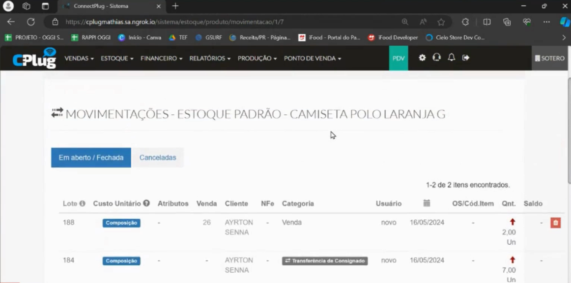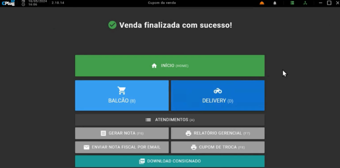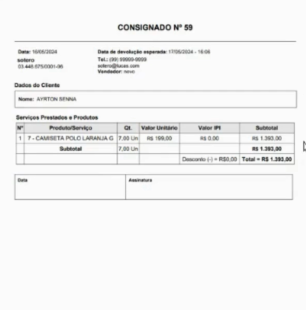 Automaticamente, a venda é finalizada, mas os produtos não são considerados vendidos no momento. Em vez disso, são transferidos do estoque padrão para o estoque consignado.