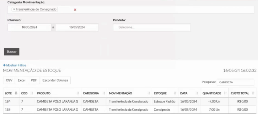 Com ele, é possível visualizar quais itens estão em consignação, quantidades disponíveis e quando entraram nesse status.