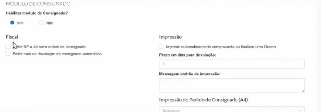 3 - Configurar o prazo em dias para devolução dos produtos consignados.