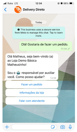 - Fazer pedido – o bot encaminha o link da loja.