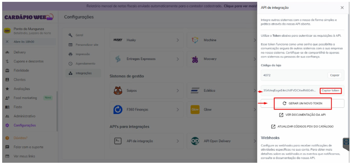 1. Gerar Token no Cardápio Web