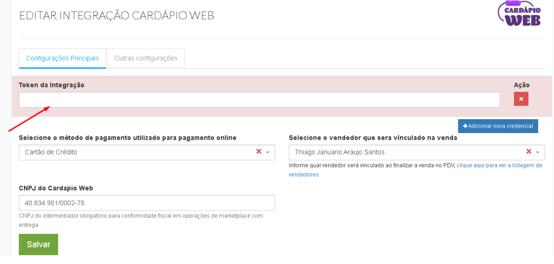 Configurando a Integração com Cardápio WEB