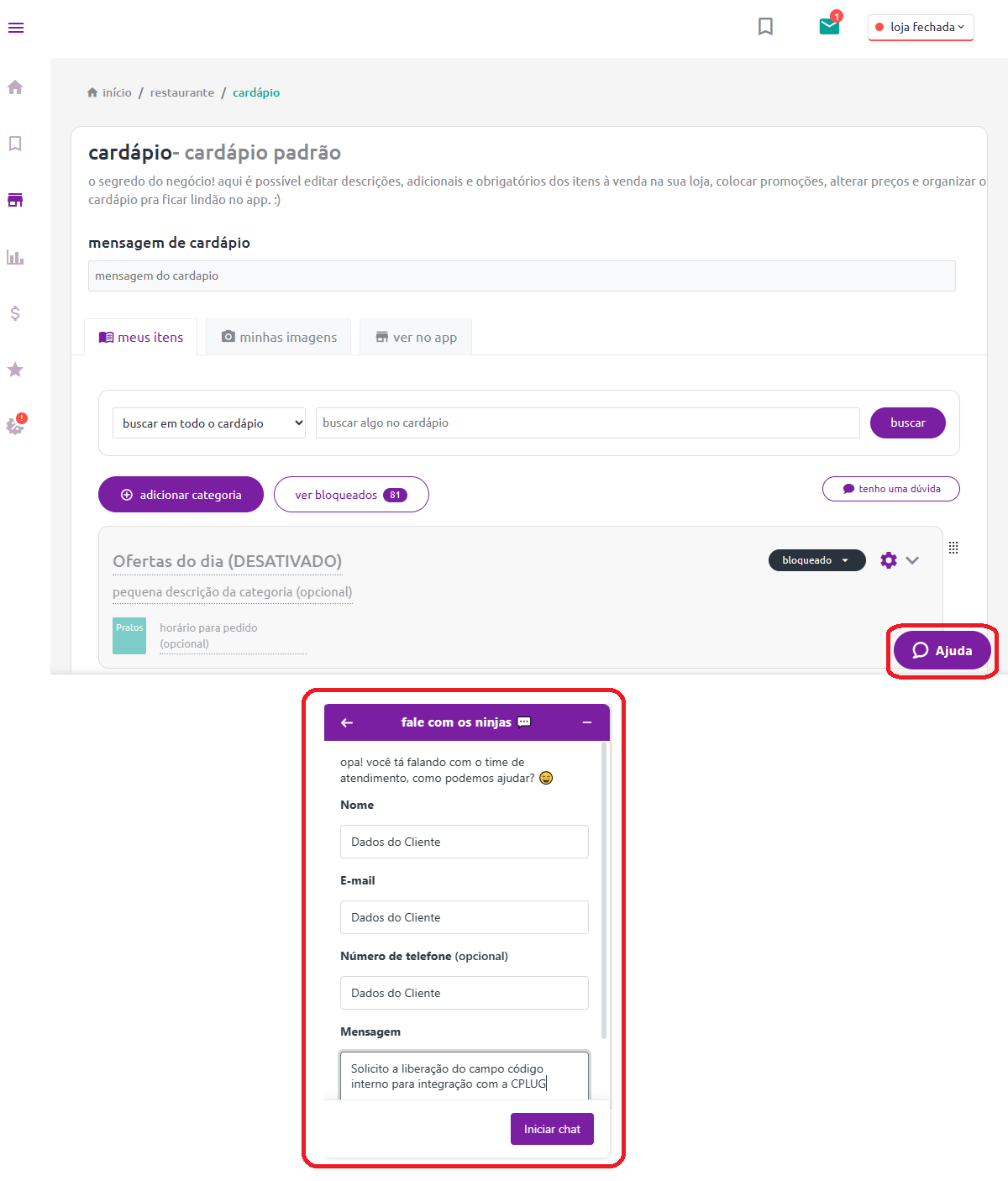 É necessário acionar o time de suporte da plataforma AIQFOME VIA CHAT e solicitar a liberação deste campo para integração com a CPLUG.