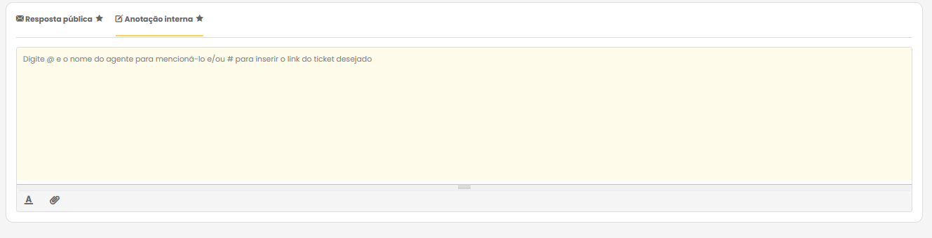 - Resposta Pública: É a comunicação que chega ao e-mail do cliente. Utilize apenas para finalizar o processo ou informar dados que o cliente final deva obrigatoriamente possuir.