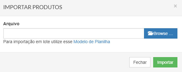 - Clique em Modelo de Planilha para baixar uma planilha que será usada como base para importação de Produtos
