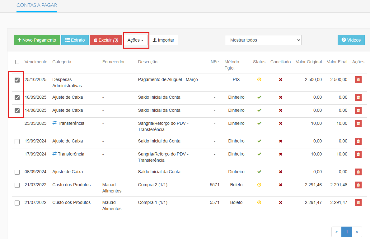 Selecione mais de 01 Pagamento e tenha a possibilidade de realizar ações em lote