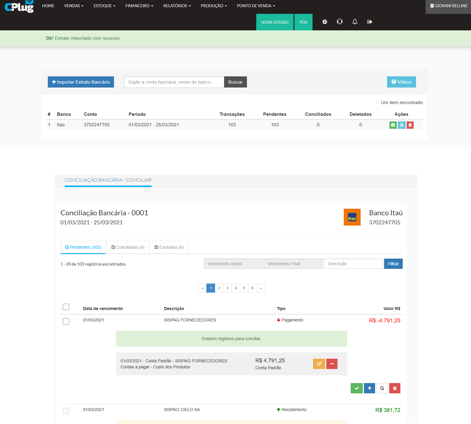 O processo é simples: você importa o extrato da sua conta bancária para o ERP, e o sistema valida automaticamente se cada registro do extrato corresponde a um lançamento no Contas a Pagar e Receber.
