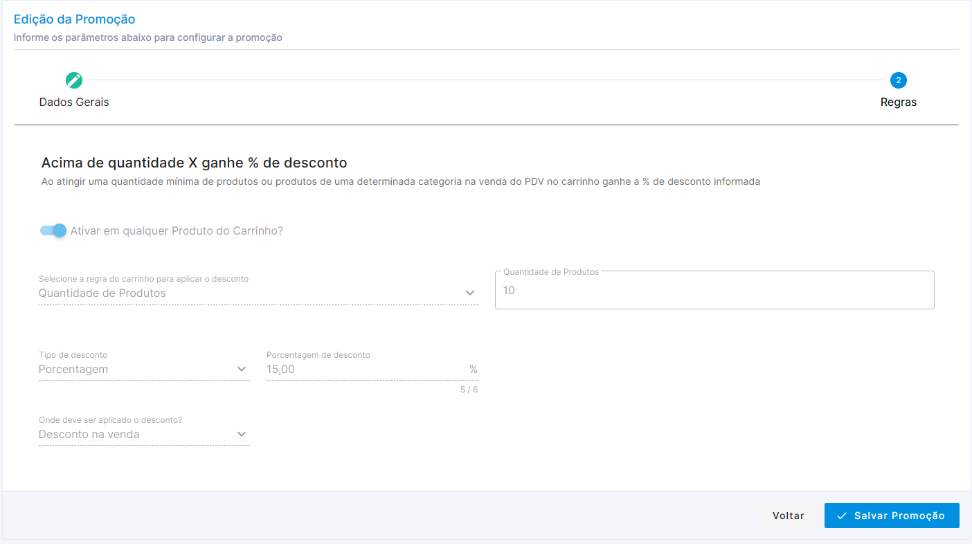 Valor mínimo da venda: defina o valor mínimo para que a venda contemple a respectiva promoção