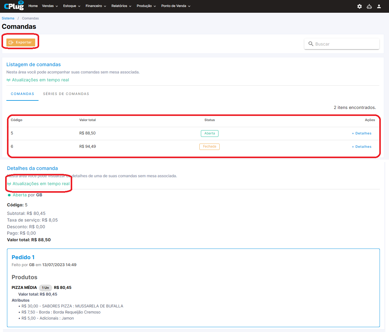 Tenha a possibilidade de exportar em formato JSON, além de poder criar uma nova série de comandas.