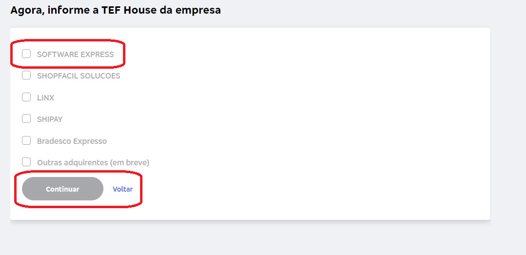 A opção SOFTWARE EXPRESS deverá ser selecionada e após isso, clicar em CADASTRAR