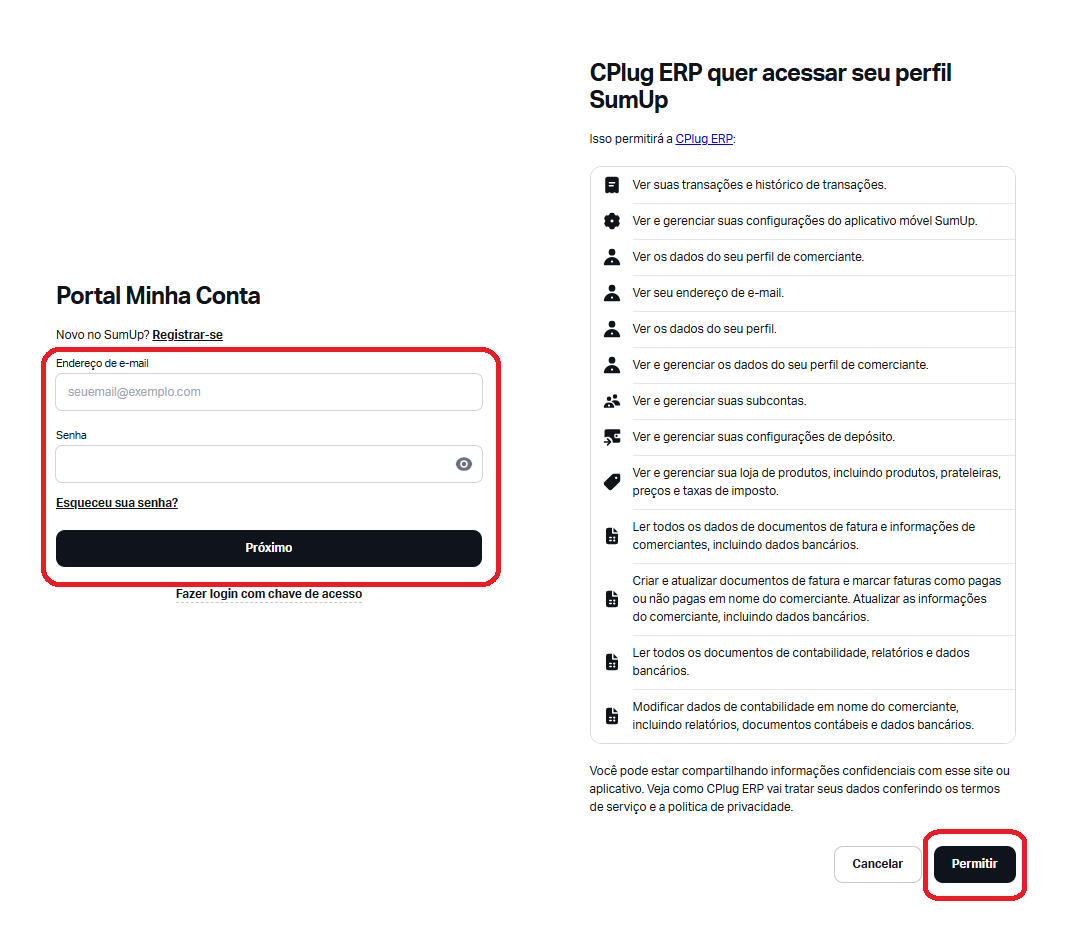 Caminho da tela abaixo: Portal SumUp Minha Conta/Permissão de acesso